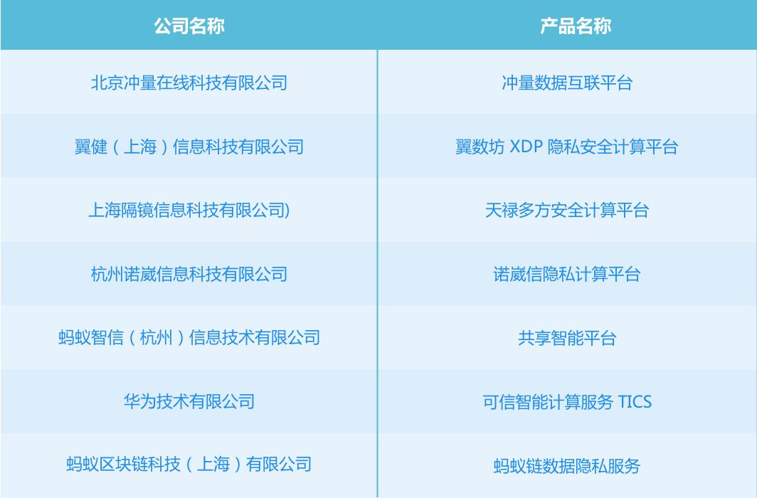 (内容来源于:2020年12月首批通过中国信息通信研究院可信执行环境的数据计算平台评测的企业名单)