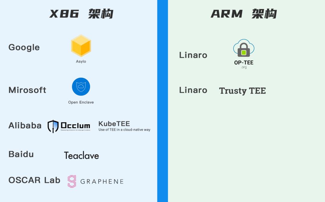 TEE技术已经成为硬件行业和软件行业争相布局的安全领域。硬件行业包括全球最领先的计算芯片设计制造商Intel、AMD、ARM都提出了各自的TEE实现方案;软件行业,虚拟化方向包括VMware、Xen、KVM都在跟进TEE虚拟化方案,云服务行业包括AWS、Azure、Google Cloud、Alibaba Cloud、IBM Cloud、Oracle Cloud都在推出基于TEE的安全计算服务。可以确信,在不久的将来,可信执行环境TEE一定会成为安全计算的基础技术。