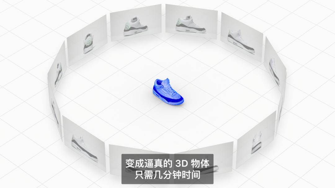 这里的扫一扫可不是说二维码,而是一种非常真实直接的建模技术。说实话,这是我整场发布会中,看到最为亮眼的技术,因为它真的给你提供了无限的想象力。在发布会上,苹果展示了一个最直接的案例,扫描一双球鞋。