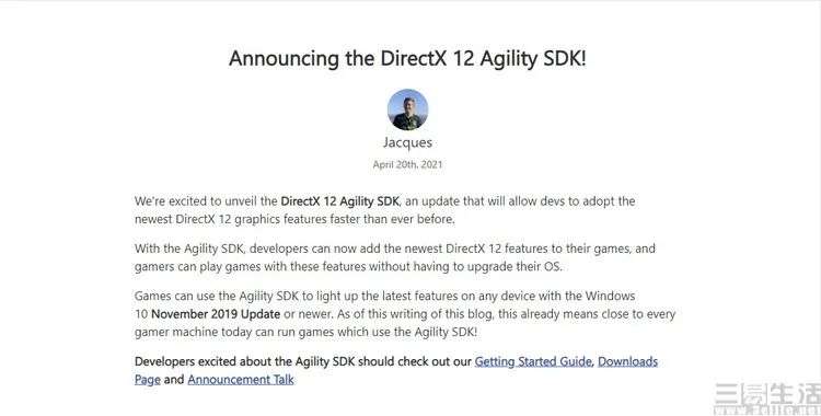 不过微软似乎也已经意识到,在PC操作系统上普及更新的图形技术,会比在游戏机上使用它们能够唤醒更大的市场潜力。因此在今年4月20日,微软正式发布了一个名为“DirectX 12 Agility ”的SDK。而这个SDK最大的意义,就在于它包含了原本预定在“下一个版本Windows”上才会出场的全新DirectX 12 功能,同时兼容更多更老的Windows 10系统版本(1911或之后版本均可安装)。