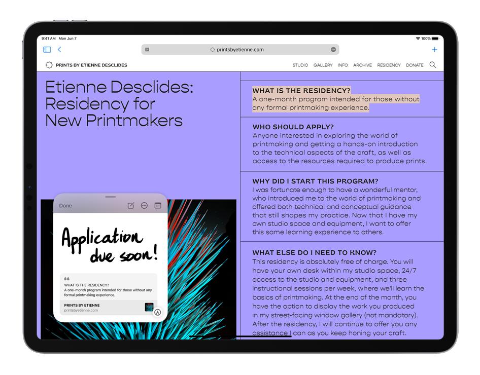 便签应用有了许多协作能力,可以直接@ 其他用户还能加入标签、注释等,从iPadOS横跨到全平台。平板端将拥有系统全局的快速便捷输入功能,从边角往上一拉即可开始记录或写写画画,不再需要单独回到桌面启动便签,还能直接插入应用和网站的快捷链接。