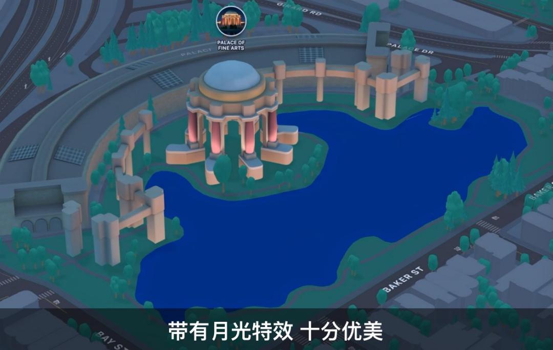 而苹果地图此次则在UI设计和功能上都进行了更新改变,首先是在推出了具有全球视图和更详细的城市 3D 视图功能,意味着地图上将现实更详细的地标信息,包括形态、海拔等等,同时还设计了夜晚月光模式,看起来挺萌的。
