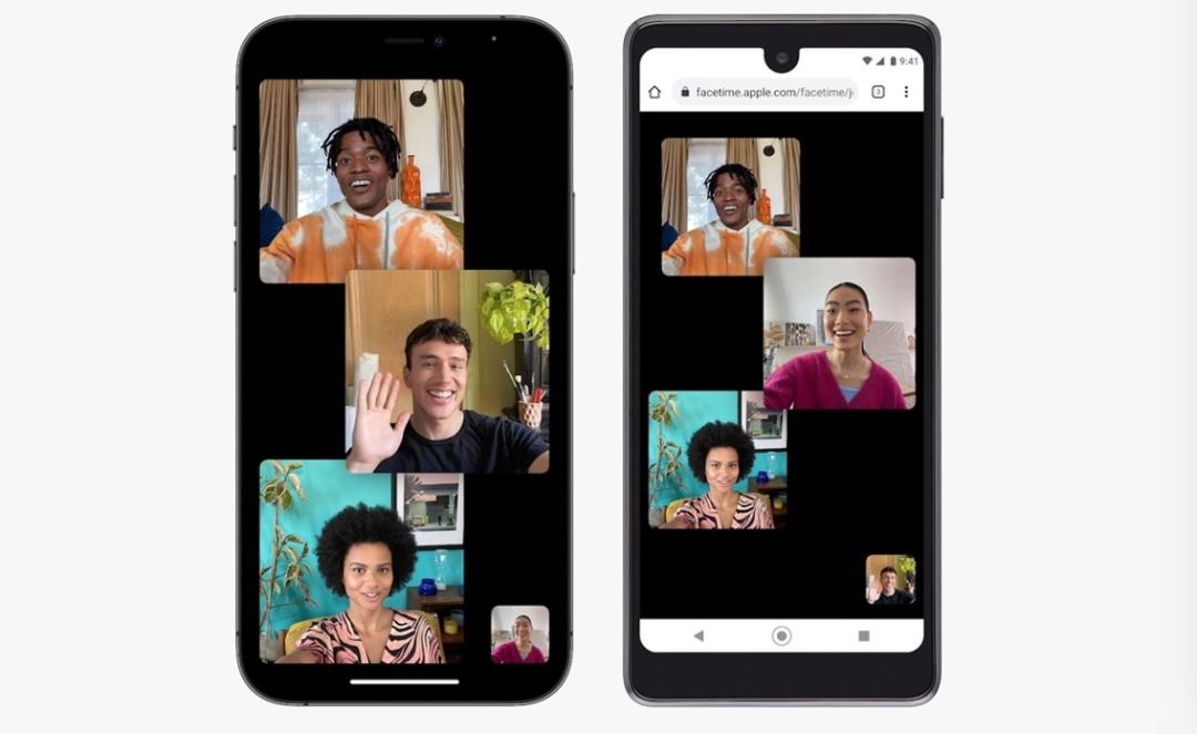 接着介绍了最重要的一项功能更新——共享播放(Shareplay),这项功能将允许用户把音乐、视频和电影同步带入通话,并且支持共享屏幕。什么意思呢?就是你在Apple Music里听到了喜欢的歌、在Apple TV里看到了好看的电影、或者在Twitch上直播打游戏可以一键分享给你的好友,他们就能跟你在FaceTime的同时一起听歌和观看、讨论,以分屏的方式呈现。
