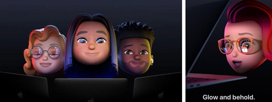 不得不说,在搞悬念和博关注这件事上,苹果绝对是一众科技公司中玩得最6的。今年大会的邀请函和宣传海报一经发布就吊足了观众的胃口,有人眼尖地发现有人物戴上了第三代苹果耳机,有人从几个卡通人物戴着的眼镜推测Apple Glass即将揭晓,有人认为从动画人物开盖后直接跳转桌面的操作推测出Mac OS将推出人脸解锁功能,有人通过邀请函上Macbook开屏约60度的夹角计算预测苹果将推出16寸的Macbook Pro,甚至还有人大开脑洞觉得此次大会主题"Glow and behold"中的Glow代表的是Apple Car的前灯…