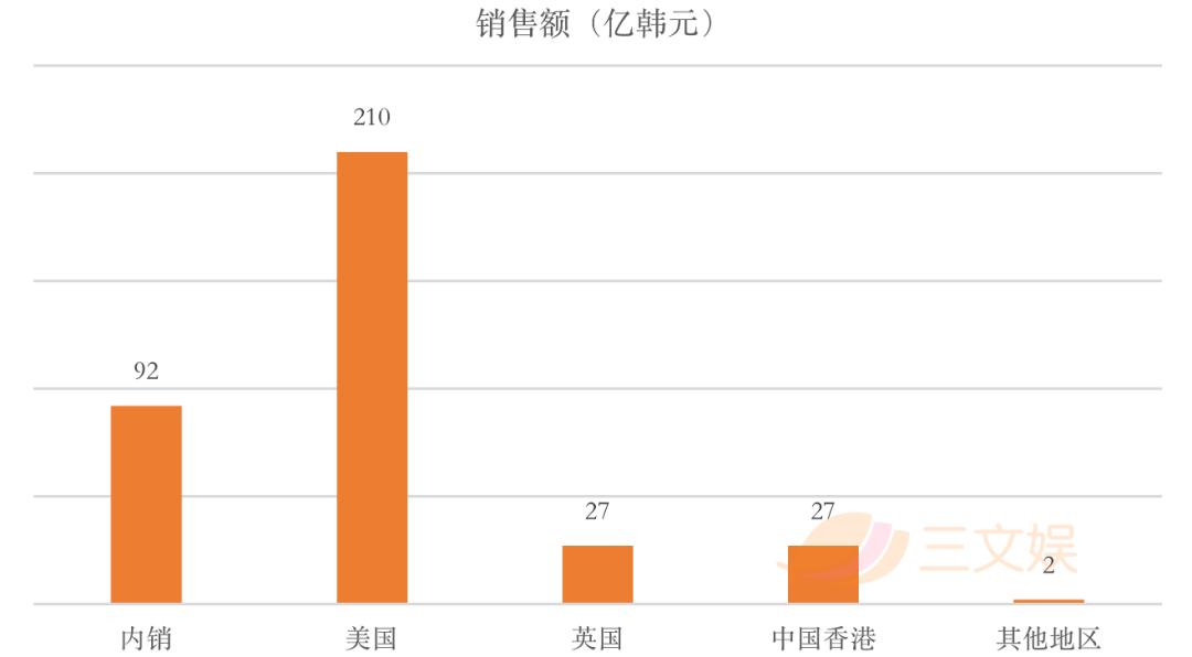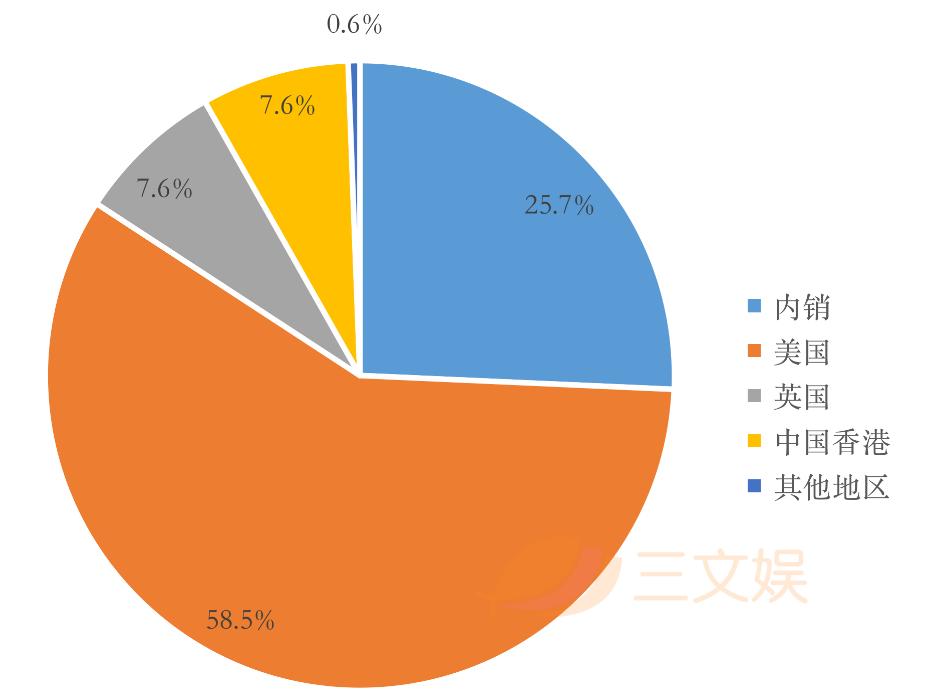 从第一季度各地区的收入中就可以看出,Aurora World在美国的销售额就以1.2亿元占据了58.5%的份额。其次是内销部分,以5276万元占据了25.7%的份额。英国和中国的香港地区各以1548万元,占据了7.6%的份额。