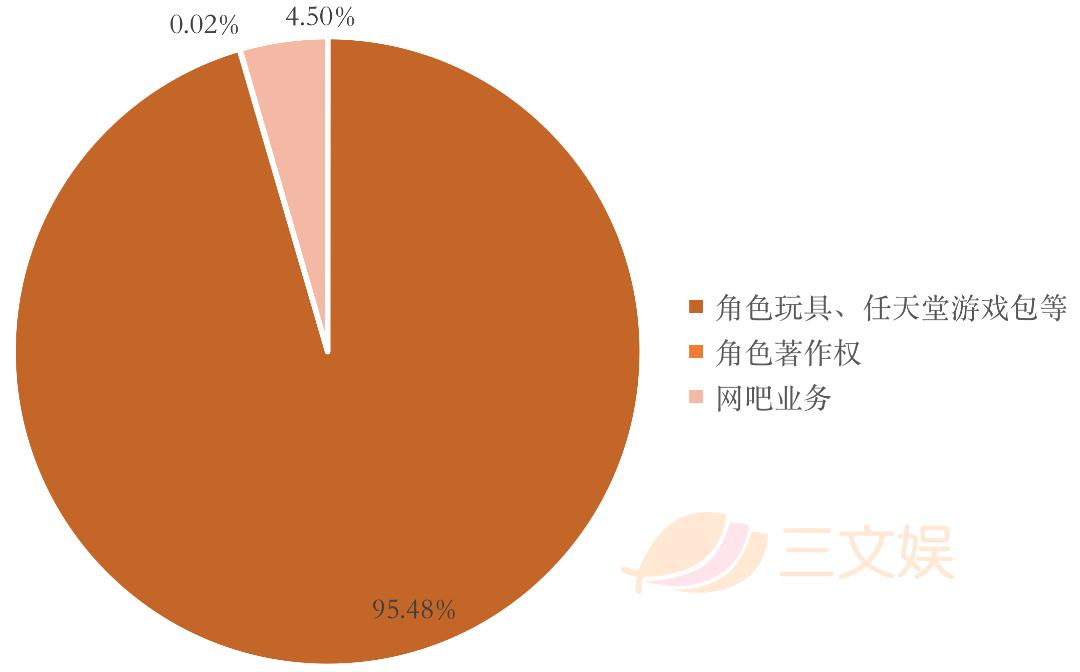 虽然Sonokong也在经营游戏业务(不包括任天堂游戏包),但其95.5%的收益来自动画角色玩具、任天堂游戏包、角色版权。其中角色周边玩具及任天堂游戏包的销售额为184亿韩元(1亿元),为公司整体收益贡献了95.48%,而角色版权的收益为352.4万韩元(2万元),在公司整体收益中占比为0.02%。