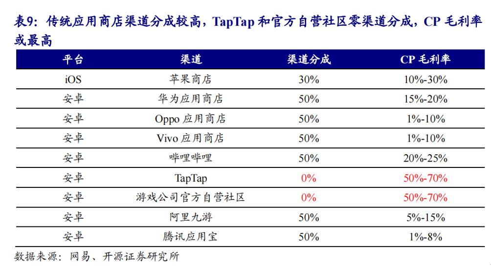 当然,并非所有的渠道都会抽成,TapTap和游戏公司官方自营社区往往就不需要进行渠道分成,由此游戏公司会获得更多的收益。