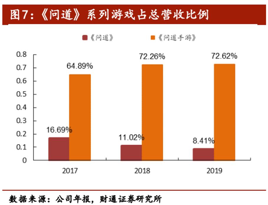 一直以来,吉比特都面临过于依赖单一产品的顽疾。过去三年,《问道》系列游戏在吉比特总营收中的占比都超过八成,来自于其他产品的收入不足两成。