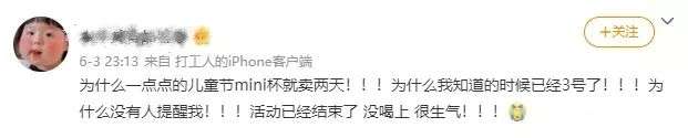 不小心错过限定mini杯的网友十分沮丧:“没喝上!很生气!”
