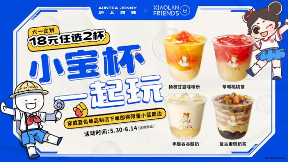 在上新打造上,沪上阿姨还加入了互动元素:5月30日~6月14日,穿戴蓝色单品到店下单即得限量小蓝周边。