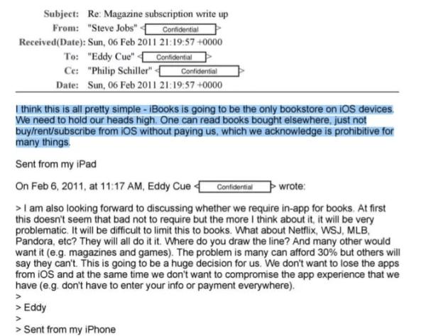我要指出,这确实让苹果在电子书案中被定为反垄断罪变得更加可疑:苹果正试图把这个行业从批发模式转变为代理模式,而这种模式正好在应用商店是行不通的。该公司提供了自己的替代品——iBooks——让情况变得更糟,就像 Apple Music 的推出使得应用商店的规则应用到Spotify 上面尤其成问题。