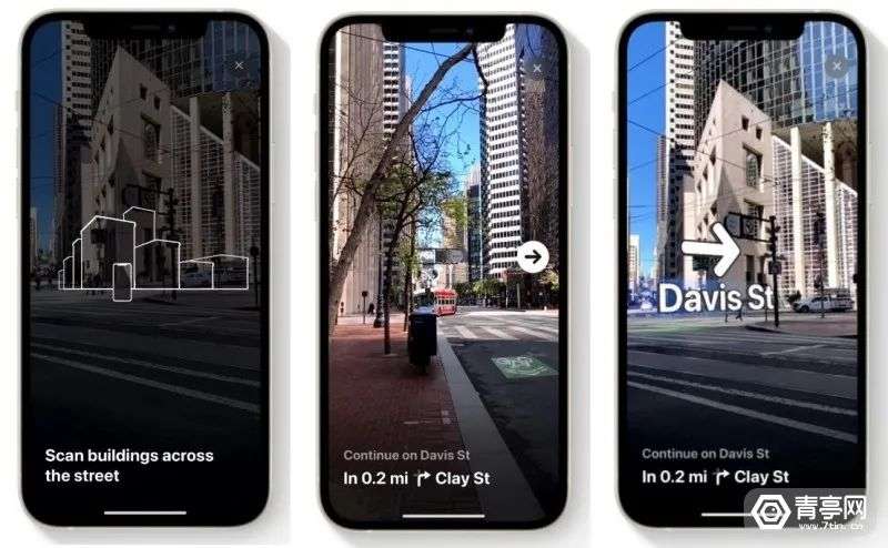另外,苹果地图也在推进更新,其中涉及到AR的一个功能是支持AR导航,当你不知道方向时,可以直接拿iPhone扫描周边环境和建筑物,即可进行定位。据悉,该功能尽在配备A12或更新芯片的设备中提供支持。