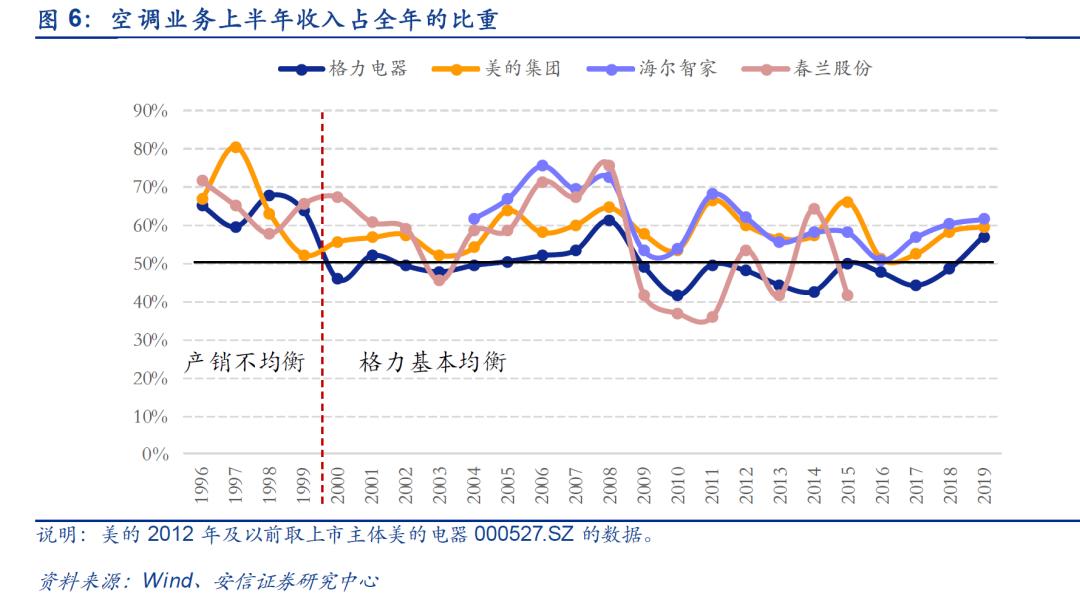 在格力扶持下,经销商规模越来越大,压货能力逐步增强,于2000年左右,压货模式大幅奏效,格力全年产销实现均衡,上半年业务比重维持在合理的50%。