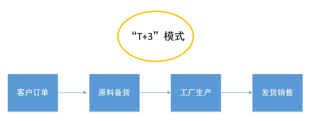T+3模式的优势是显而易见的,它将产销脱离的压货模式转变成零售驱动生产的柔性生产模式,进一步压缩供货周期,最终达到每个周期时间由7天压缩至3天以内,大大提高效率。