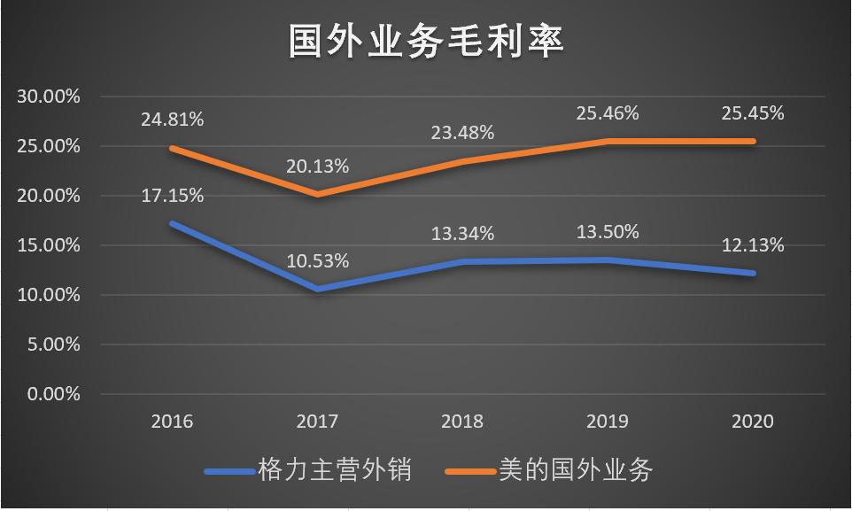 其实,美的道路可以简单概括为从OEM到ODM再到OBM,这是厂商追求更高利润的必然结果,也更加考验企业的经营管理能力和抗风险能力。从结果看,美的海外业务毛利率明显高于格力,原因就是格力海外市场产品主要以OEM为主,而美的已经以OBM为主了。