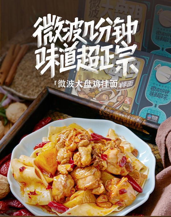 吃货研究所推荐的新品,新疆大盘鸡拌面微波美食,内有盒装,图片来源:吃货研究所天猫店