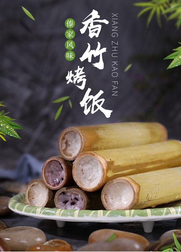 此款云南竹筒饭有糯米火腿饭、糯米菠萝饭和健康的糯米紫米饭,三种口味选择。