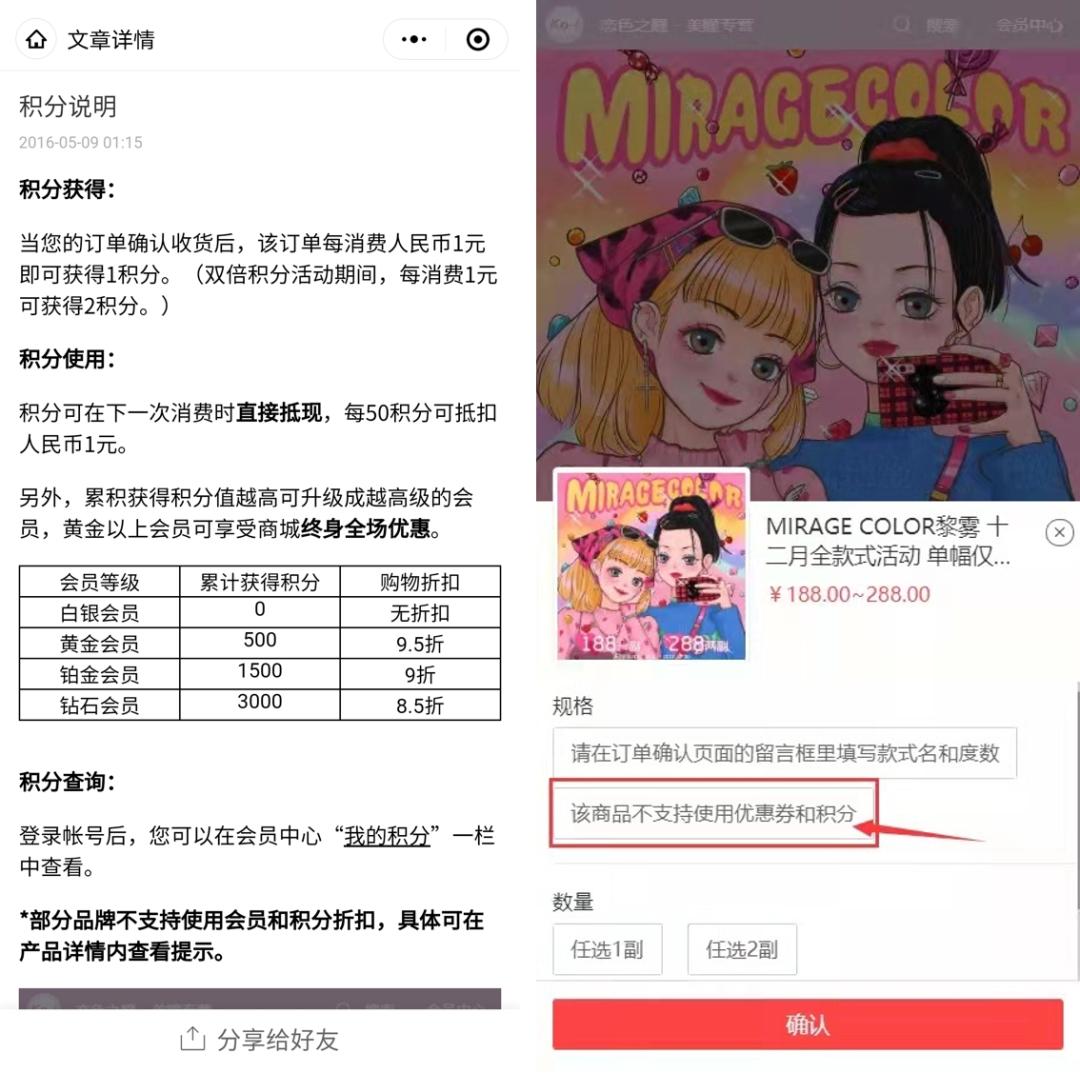 同时设定积分机制,如每个订单消费人民币1元获得1积分,大促活动则翻倍,累计积分在特定时间内兑换相关商品,提高会员的消费热情。