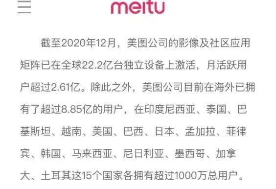 在2018年退出电商业务、2019年砍掉智能硬件业务之后,此后美图便一直专注于互联网业务。根据当前的官方介绍,美图是一家以人工智能为驱动,是中国领先的影像处理及社交平台。目前,美图公司正围绕用户的变美需求,整合与赋能变美的产业链,共同服务用户。