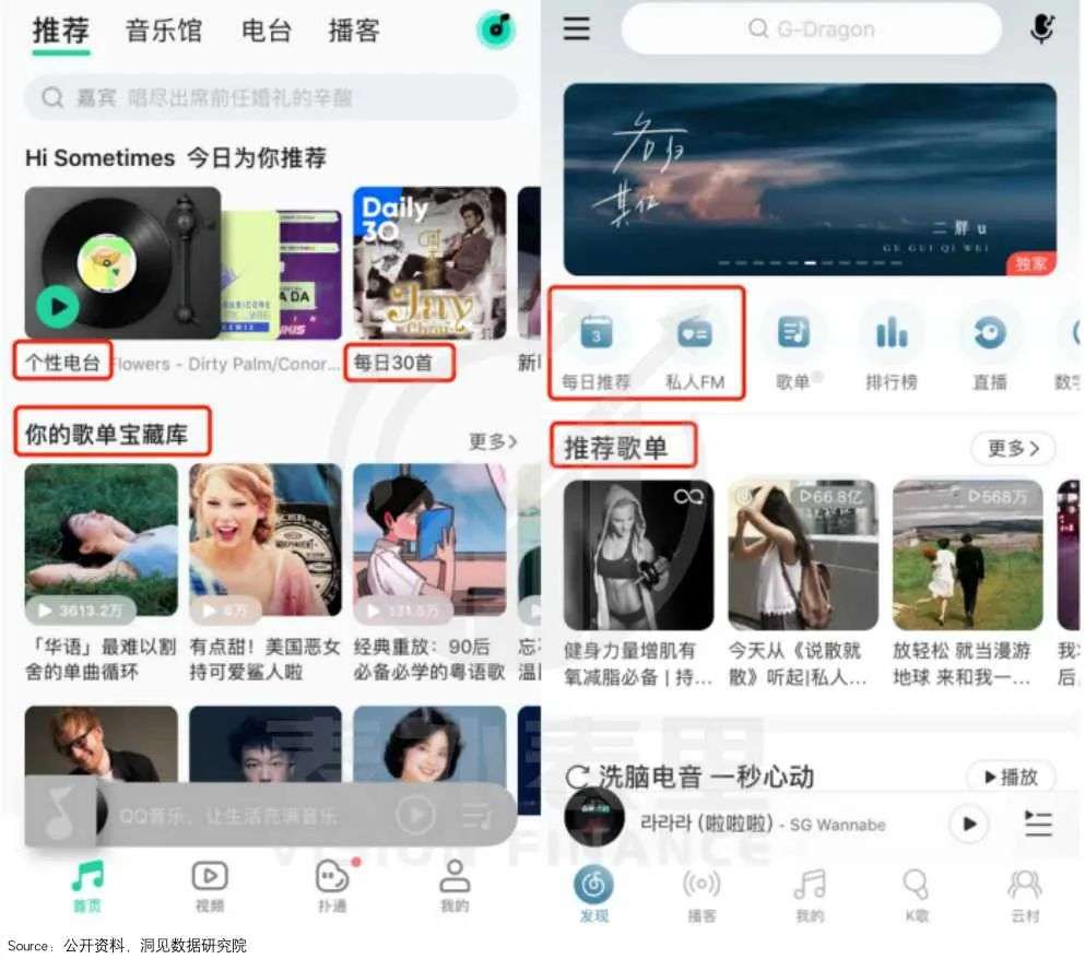 如今,歌单、个性化推荐及评论等功能,已成为国内互联网音乐平台的标配。如下图,如果隐去logo标志,QQ音乐和网易云音乐的首页傻傻分不清。