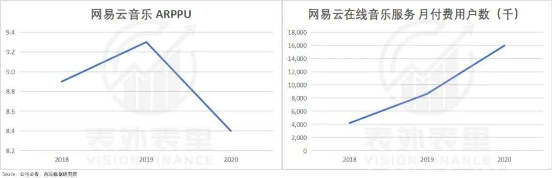 网易云也曾采取类似的提价方式,但拉新效果受到影响。2020年平台大幅降低ARPPU值,付费人数进而有较大提升。据招股书:2020年月付费用户数达1600万,较2019年增加了740万。