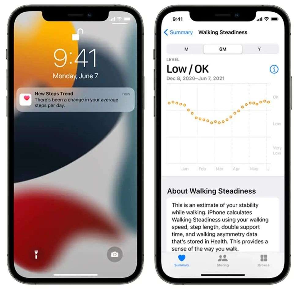 步行稳定性并不需要 Apple Watch 的辅助,只需将 iPhone 放在口袋中,它就会自动记录你的步行稳定性。
