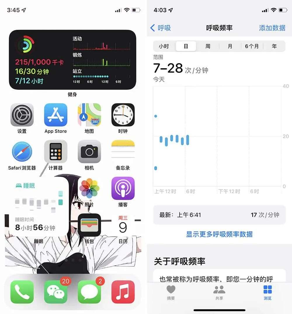苹果在 watchOS 7 中首次加入了睡眠检测功能,在 watchOS 8 中则更进一步,加入了呼吸频率的检测。