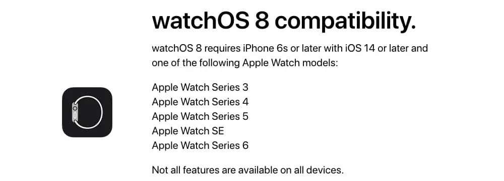 ▲watchOS 8 支持 Apple Watch S3 及以上版本