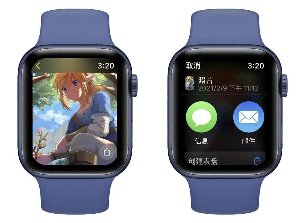 有了好看的照片,当然要分享给好友。watchOS 8 同样升级了分享功能,你正在看的照片、正在听的歌曲,都可以通过邮件、信息直接分享出去。