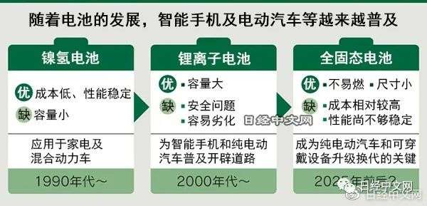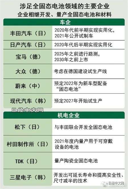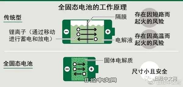 现有锂电池方面,日本化工企业一直掌握着“正极材料”、“负极材料”、“隔膜”、“电解液”4种主要材料,有观点认为,在这样的背景下,日企的优势也能在固态电池领域发挥作用。对日本的零部件厂商和材料企业来说,正式拉开序幕的电池革新是一次良机。