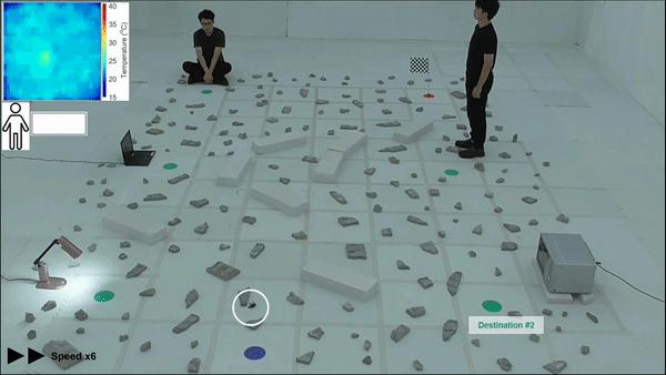 随后,该团队通过将蟑螂放置在包含多个人类和非人类目标的模拟环境中,测试了半机械蟑螂在这种复杂地形中的导航和寻找人类的能力。