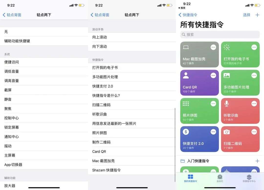 更难能可贵的是「轻点背面」这个功能还支持快捷指令功能扩展,这里就体现出 iOS 软件生态的强势了,基于自动化的快捷指令几乎可以调用 iPhone 当中的一切功能,堪称最强侧边按键了。