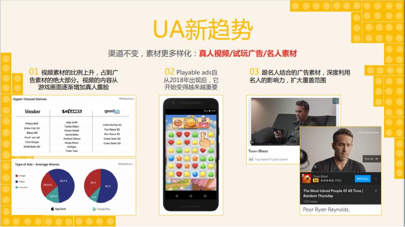 可以看出,好内容已成为游戏营销的核心战略。尤其是在现今视频广告素材越发普及的情况下,单纯的游戏内容不一定能很好地吸引用户注意力,由此越来越多的素材开始逐渐尝试增加真人素材来加强吸引力。