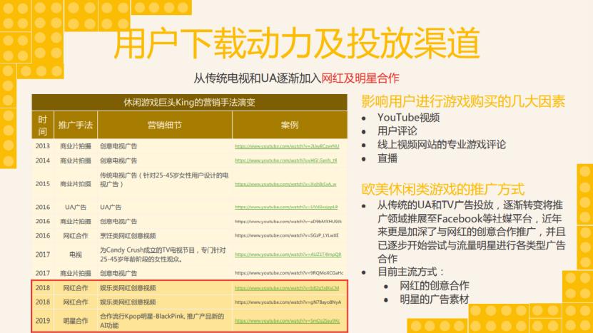 纵观整个市场,休闲游戏垂直类网红数量很少,量级也很小,因此,可以基于休闲类游戏目标用户的特性,选择利用影响力相对较大的大型网红,来制作更多有趣好玩的内容,用一种有创意的形式将宣传内容植入其中,精准定位产品核心信息,包装成目标用户喜欢的语言,再将多种不同的营销方式整合,最终达到展示产品、增加玩家下载的目的。