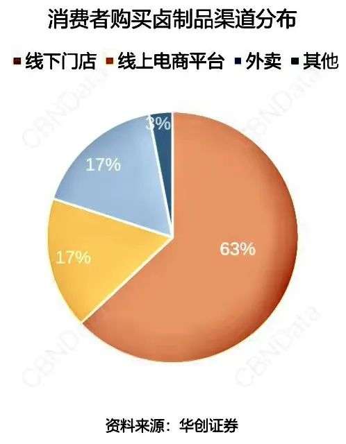 华创证券的报告显示,目前线下门店贡献了卤味市场超过六成的销售,其中,加盟为主的绝味食品的门店超过了12000家,直营为主的绝味鸭脖门店也达到了1700家以上,刚刚提交招股书的紫燕食品的门店数量也超过4300家;电商和外卖渠道则平分秋色,占比都在17%左右,但份额提升更快。