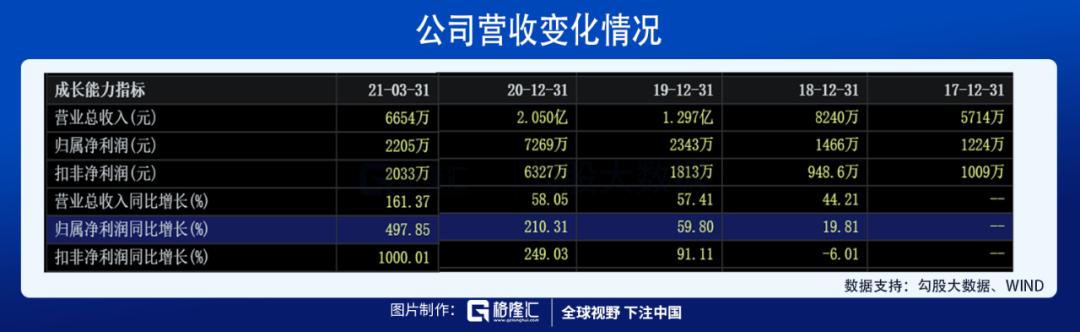 2017-2020 年,公司营收从 5714 万元快速增长到 2.05 亿元,CAGR 达到 53%,归母净利润从 1224 万元增长到 7269 万元,CAGR 达到 81%。