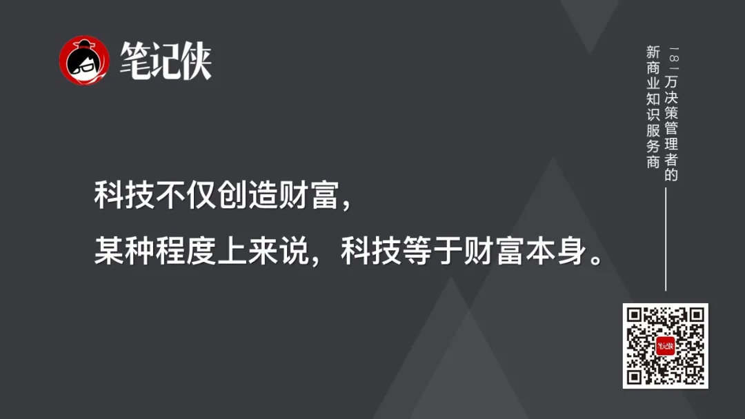 再来,科技推动经济迅速增长——科技不仅创造财富,某种程度上来说,科技等于财富本身。
