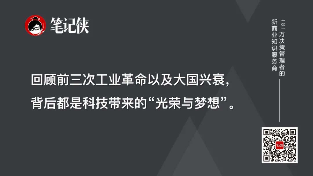 科技推动国家崛起——回顾前三次工业革命以及大国兴衰,背后都是科技带来的“光荣与梦想”。