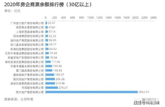 而2020年底商票余额超过30亿房企一共有17家,其中11家是销售额top20的企业。不过,一些排名靠后的如厦门建发,其商票余额也超100亿。
