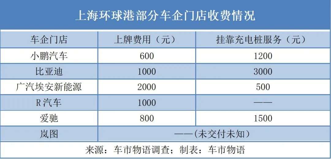 车市物语在环球港多家直营店发现,上牌费用等服务费并非比亚迪一家独有,包括新势力车企、其它传统车企都会收取600-2000元不等的上牌费。更有一些传统车企新能源品牌收取金融服务费,比如广汽埃安贷款手续费为3000元。