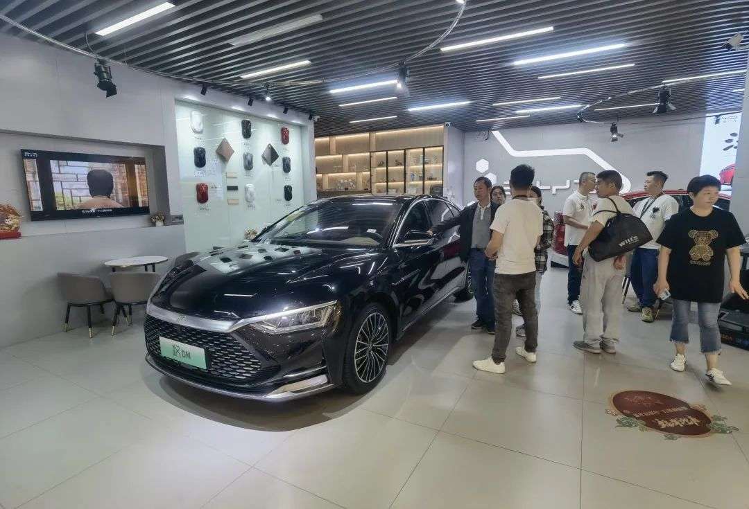 另一端,比亚迪门店的人流和销量一定程度上呈正比。据车市物语了解,秦PLUS DM-i 已经排产到8月,停在展厅的比亚迪汉当日下午要交付给用户。