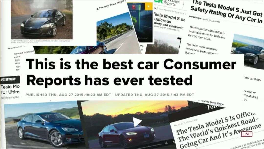 在发布会的一开始,他们快速回溯了Model S 9年来取得的所有成绩,而画面最终落脚在“这是《消费者报告》有史以来测试过的最好的车”上。