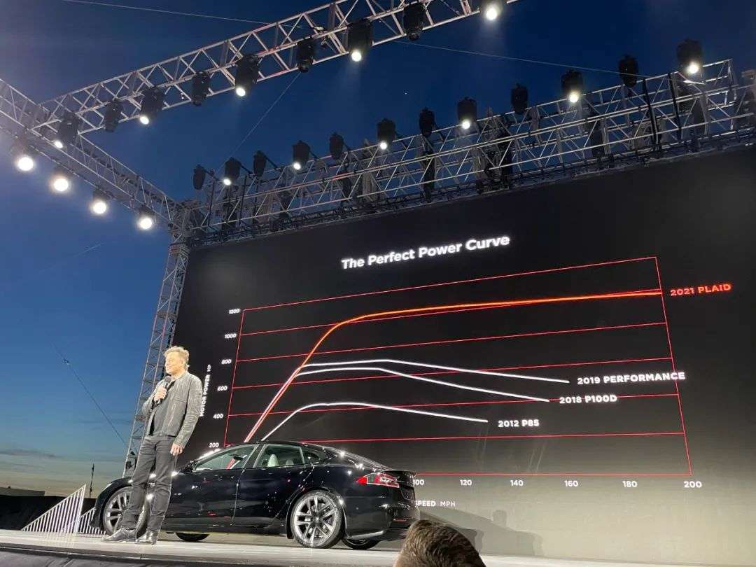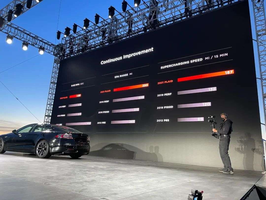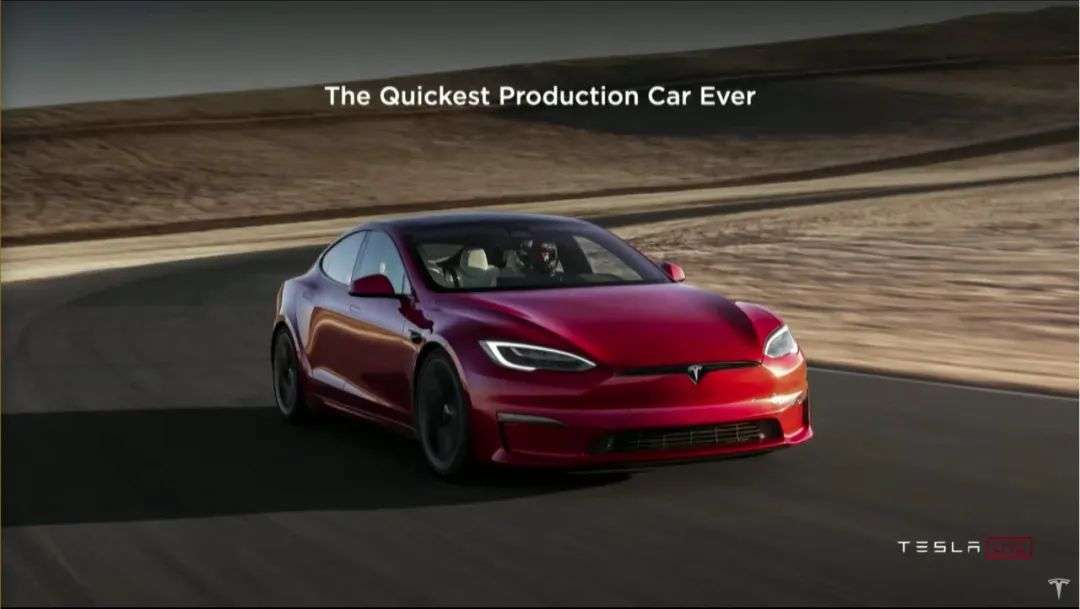 发布会正经PPT的第一页,就展示了Model S家族的成长路径,在Plaid下面的,是Model S车系之前的三大里程碑:2012年的P85、2018年的P100D和2019年的Performance。