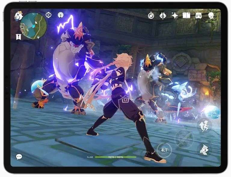 但在它创造的那个被称作「提瓦特」的幻想世界,苹果表示,令人心跳加速的战斗场景、广袤浩瀚的游戏景观,将手机游戏的视觉效果提升到了新的境界。
