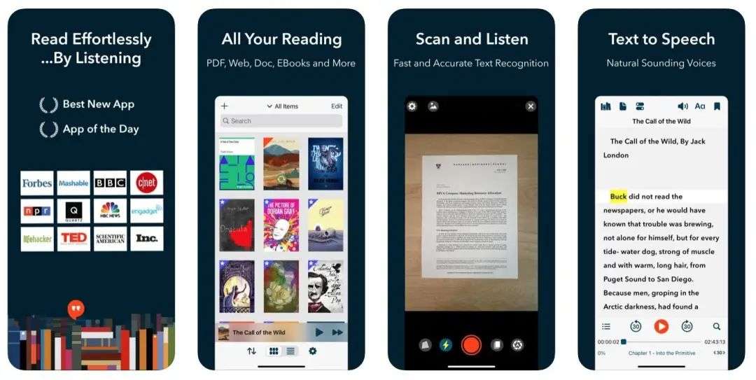 这款 app 是一款文本语音转换 app,它可以大声朗读超过 20 种语言、几乎所有格式的数字文本,包括 PDF、网页、电子书等等。