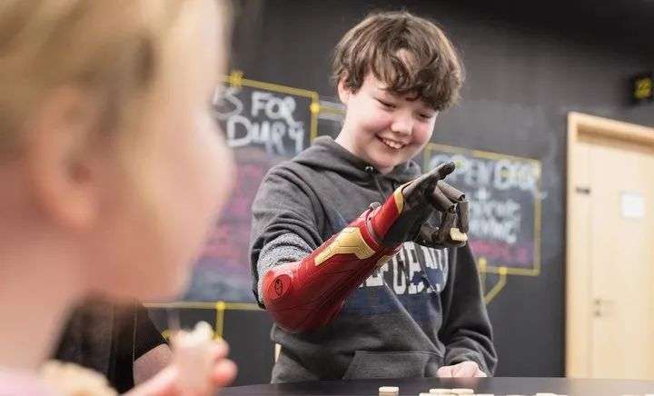 使用仿生手臂的男孩. 图片来自:daemon3dprint