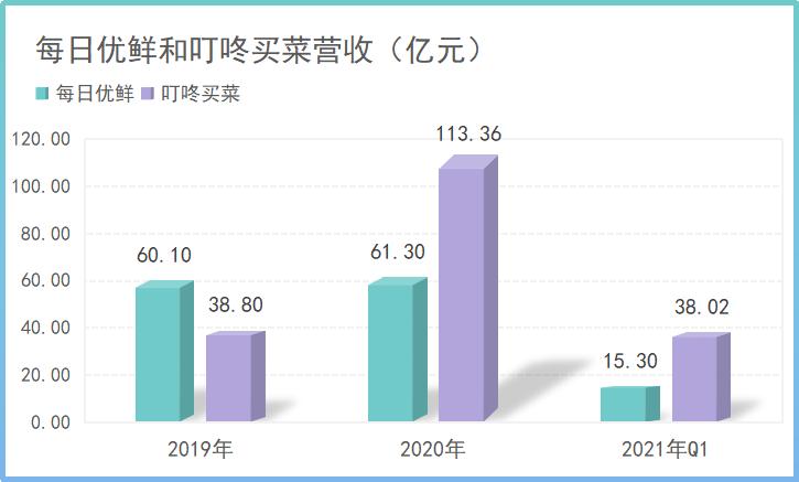 叮咚买菜显然就是那个可畏的后生,并且这个后来者,还在不断地拉开竞争的优势。今年第一季度,叮咚买菜的营收为38亿元,已经是每日优鲜的2.5倍。