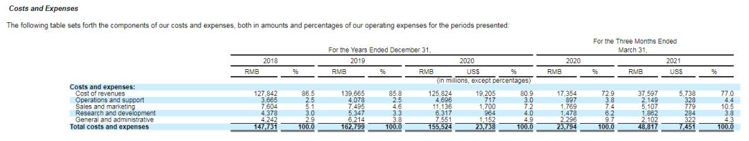 招股书透露,中国出行业务2019年实现调整的息税前利润38.4亿元人民币,2020年39.6亿元人民币,2021年一季度36.2亿元人民币。此外,2020年中国网约车业务息税摊销前利润率为3.1%。