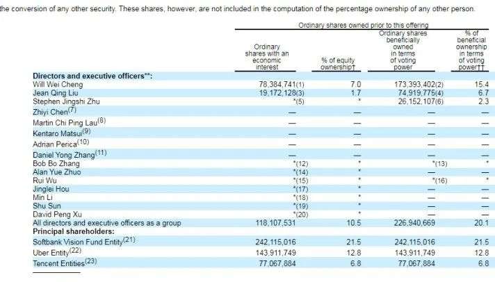 软银委派的董事会成员 Kentaro Matsui 将在滴滴上市时辞任董事,这可能意味着滴滴最大股东软银将退出滴滴董事会,而程维、柳青合计拥有超过48%的投票权。