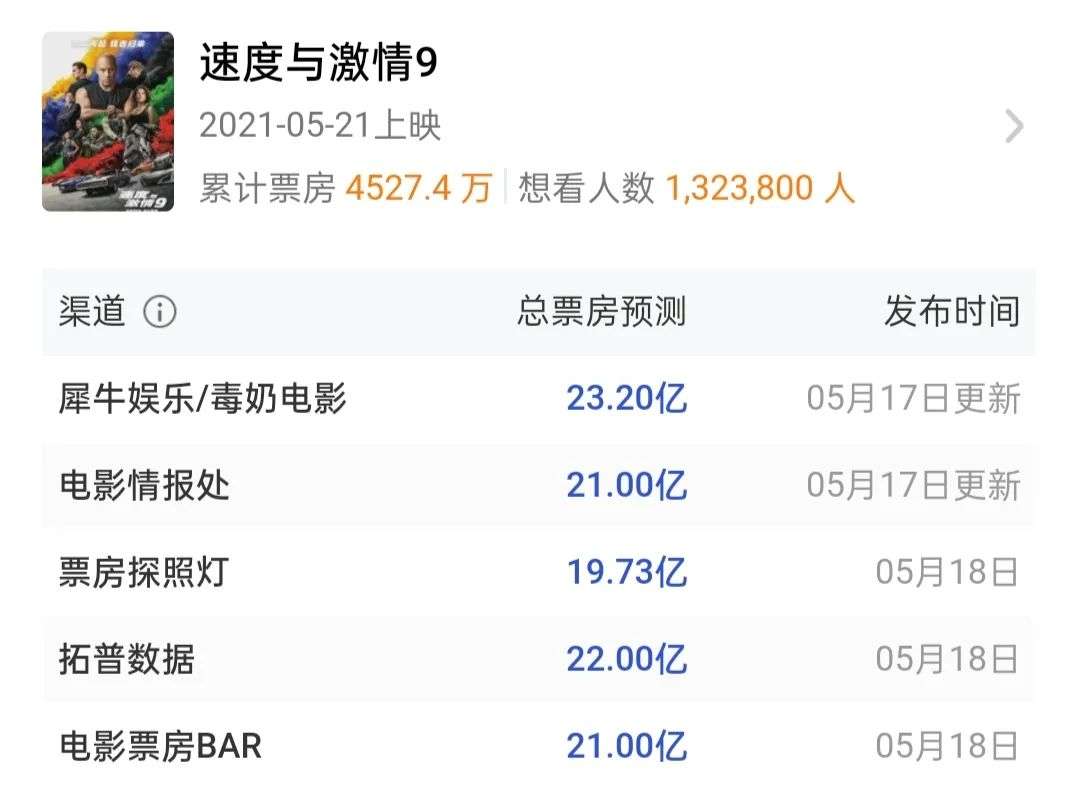 作为该系列的第九部电影,在上映之前,多家媒体对其票房给出了20亿元+的预测。